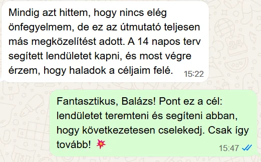 Nem kell „inspiráltnak” érezned magad. Egy gyakorlati rendszert követsz, ami akkor is cselekvésre visz, amikor nincs kedved.